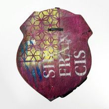 Enamel, copper, wood, silver foil commercial elements, acrylic paint