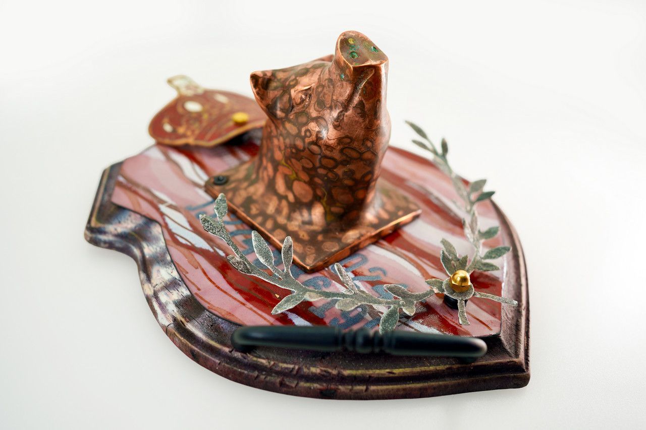 I like the duality of things. I like the tension between two opposites. I like the contrast between fragility and permanence. My background as an industrial designer draws me to functional forms, but my inner artist yearns for the impractical. I like to challenge the ideas of permanence and stability by embracing the imperfect, impermanent, and incomplete. I try to have each piece draw you in with familiar symbols, common iconography, and imagery that feels both modern and gives a nod to historical nostalgia.
